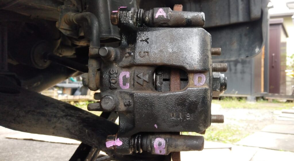 5. C,D側のブレーキパッドを取り外す